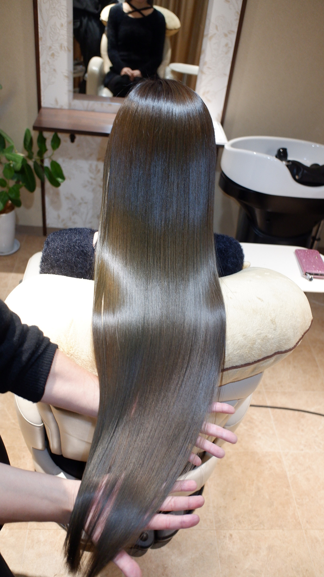 2回カラートリートメントを入れる事でロングでも毛先までサラツヤにキラキラキラキラ